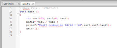 Hasil dari program di atas adalah eror. Karena hasil dari pembagian diatas di atas juga bernilai salah. Program di atas jika menggunakan karakter %d meerupakan hasil akan dibulatkan (integer). Solusi yang tepat untuk membenarkan program diatas adalah dengan mengubah int menjadi float agar menghasilkan nilai desimal/pecahan.