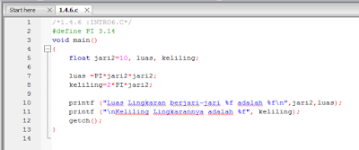 - Penggunaan konstata yang untuk perhitugan suatu formula luas lingkaran dan keliling lingkaran