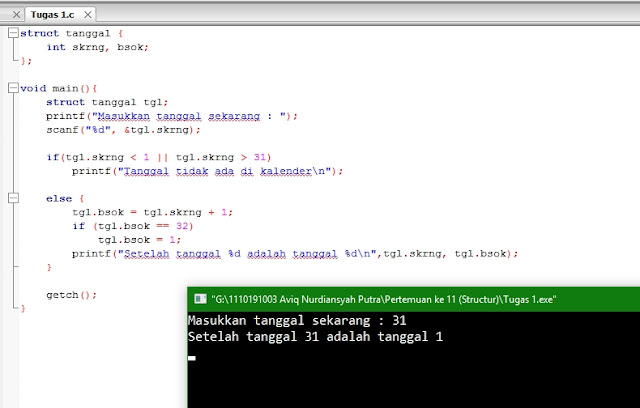 Buatlah program menggunakan struktur tunggal, yang digunakan untuk menentukan tanggal berikutnya (besok), dengan masukkan dari keyboard berupa tanggal hari ini (tanggal sekarang).
